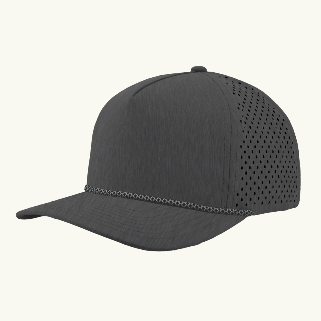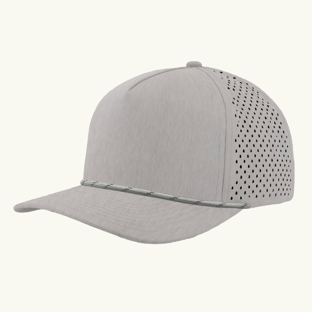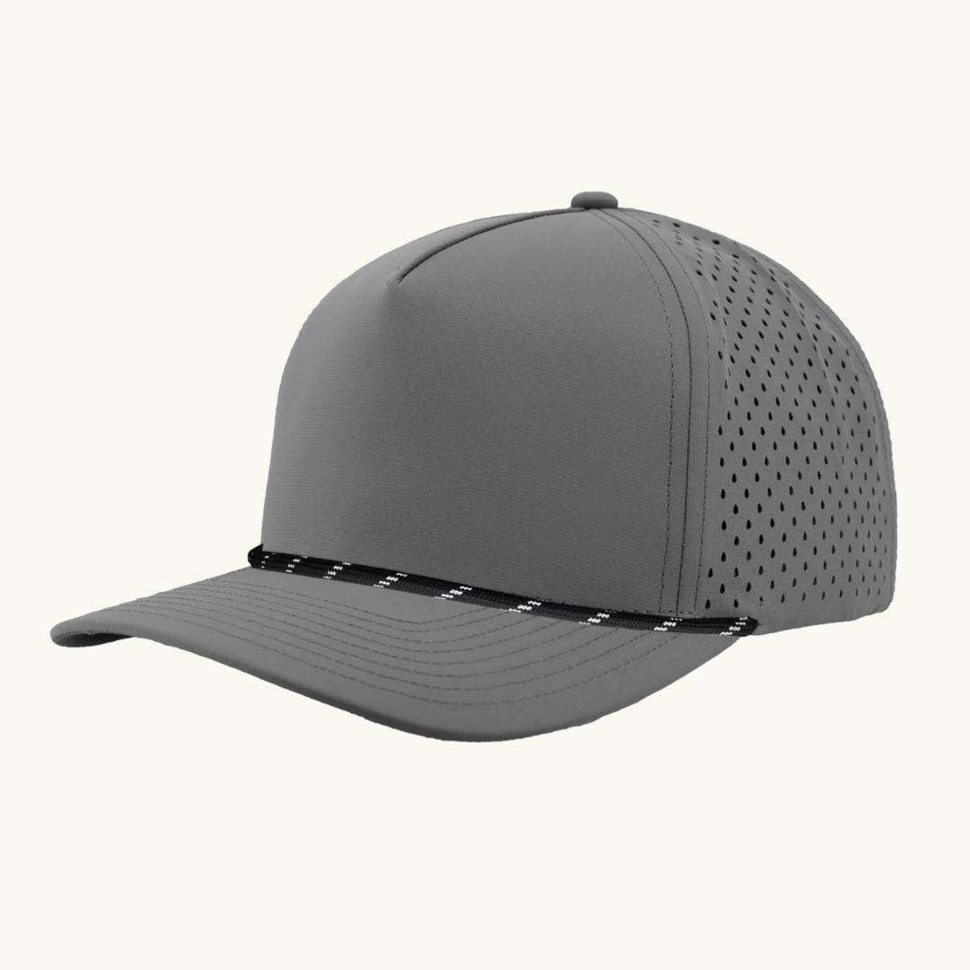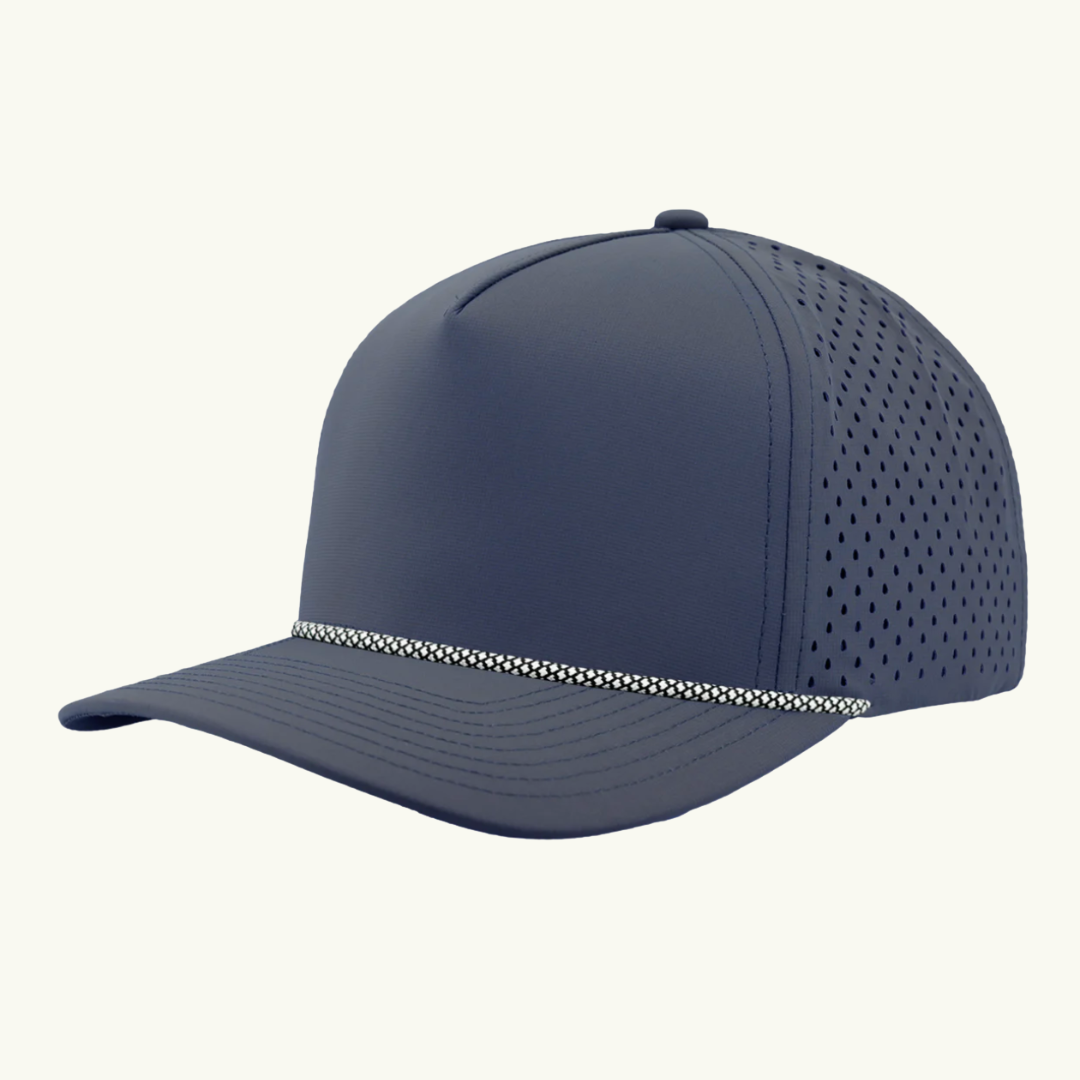 Modern 5 panel rope made of performance fabric with laser perforations.