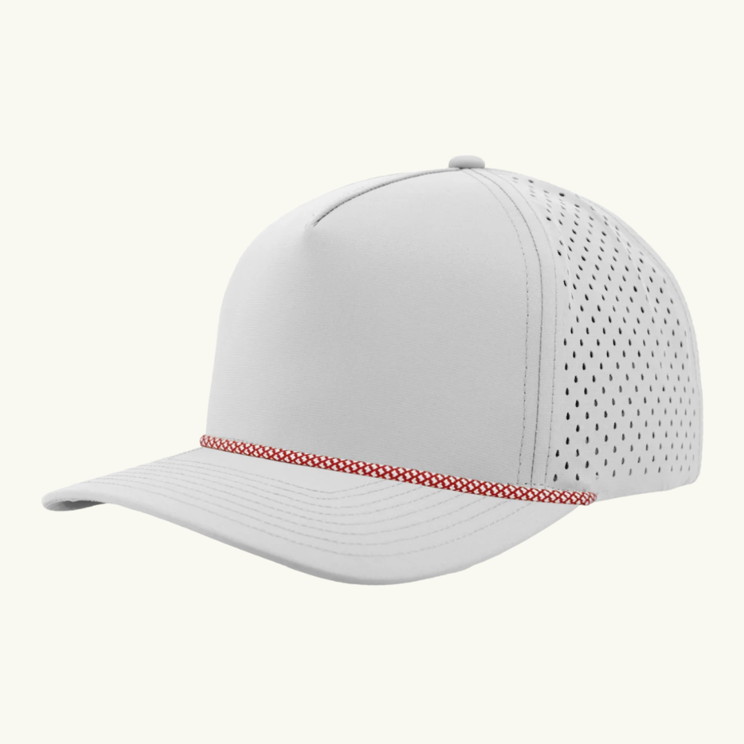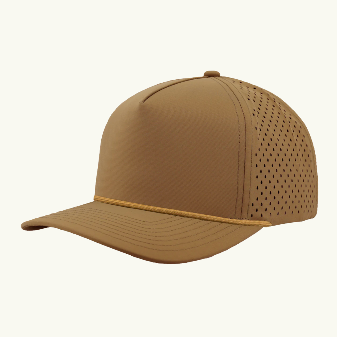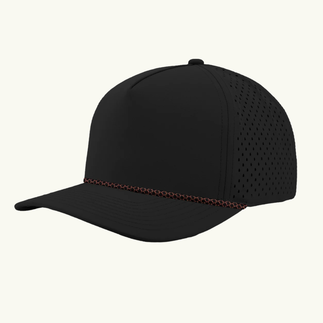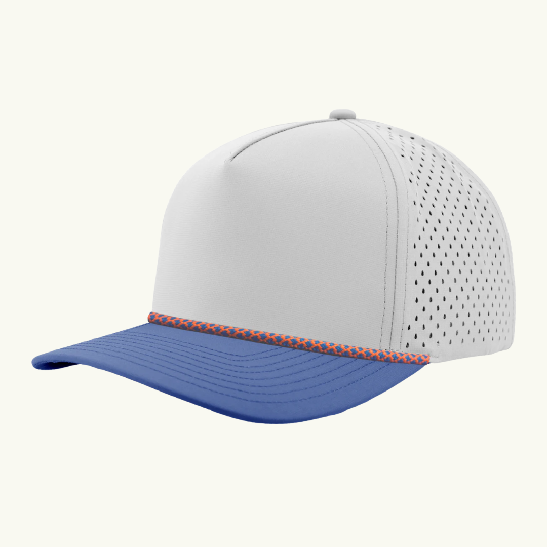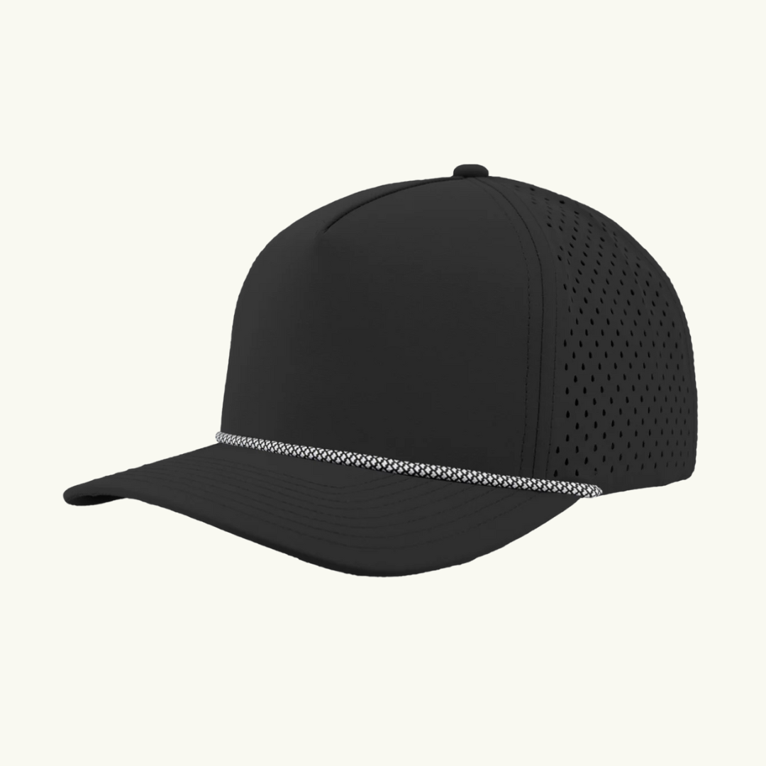 Modern 5 panel rope made of performance fabric with laser perforations.