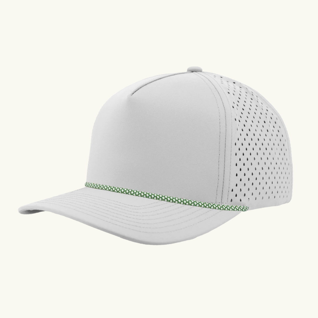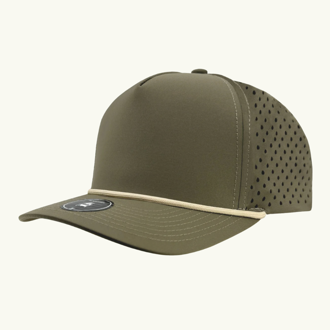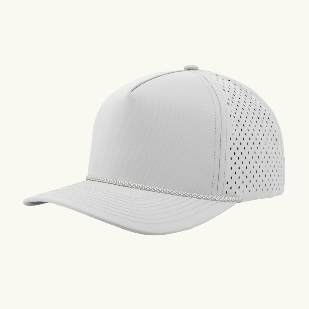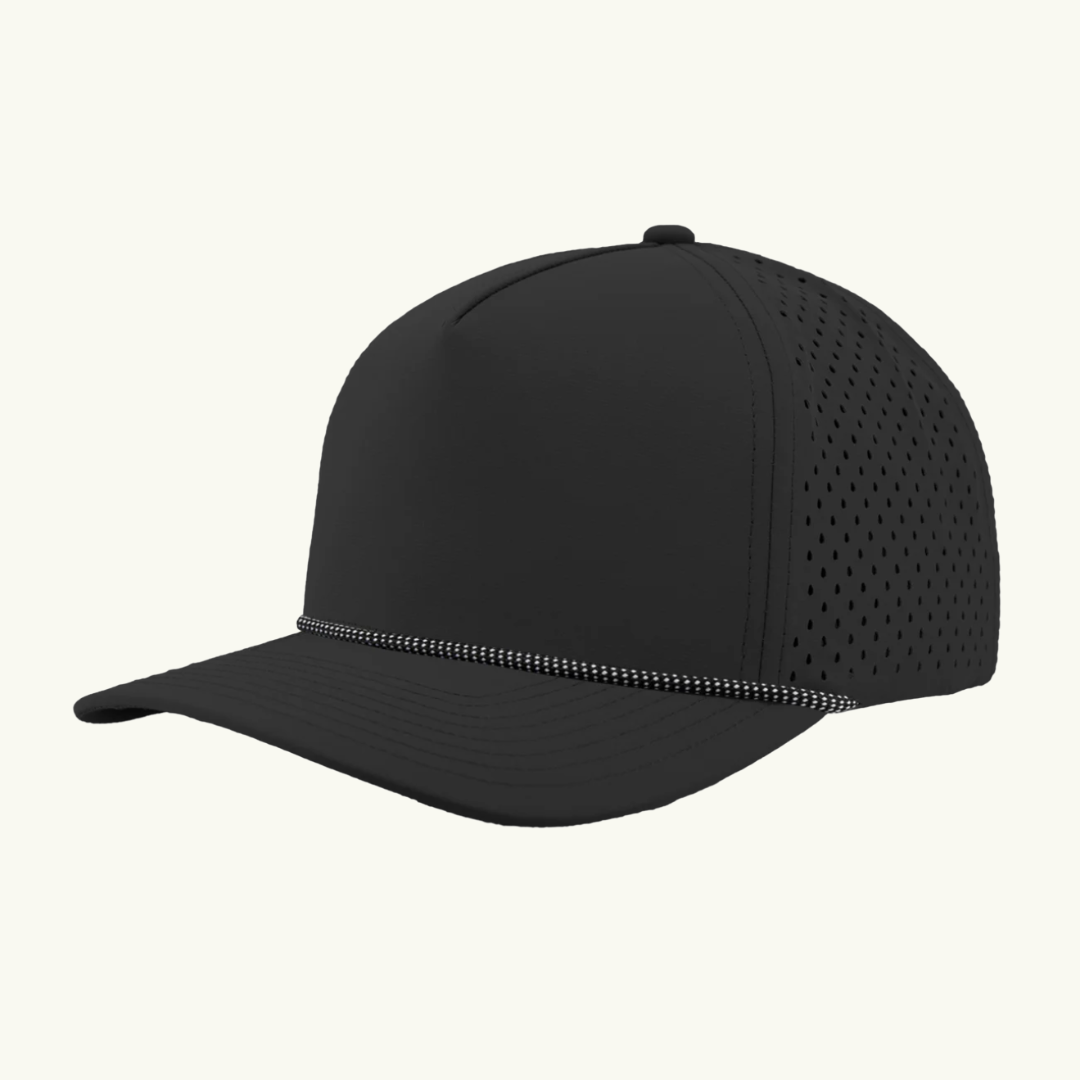 Modern 5 panel rope made of performance fabric with laser perforations.