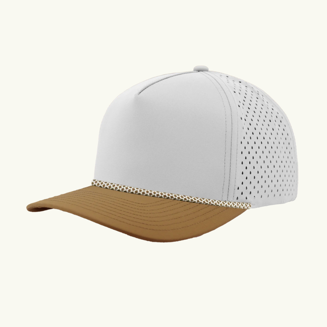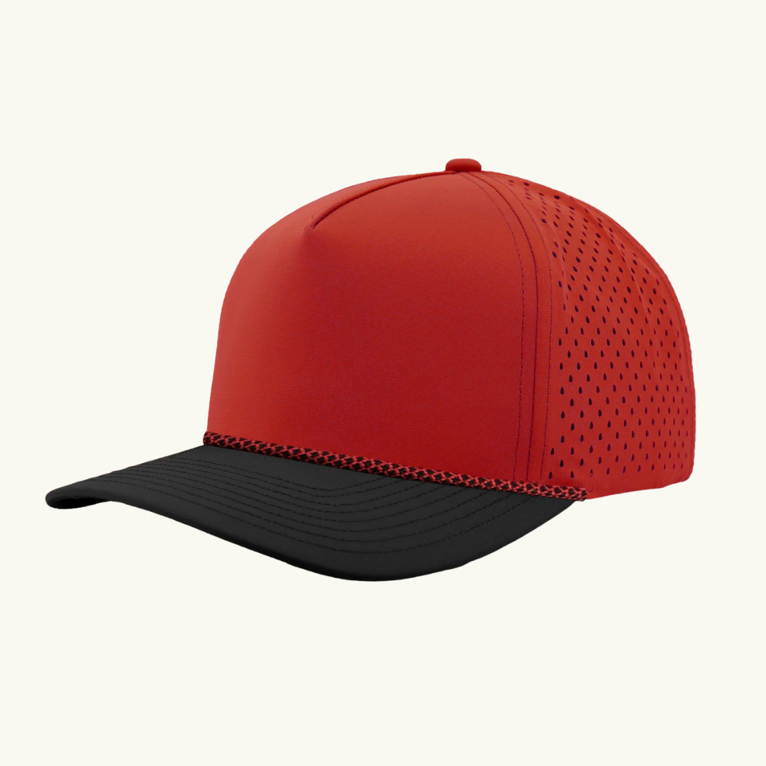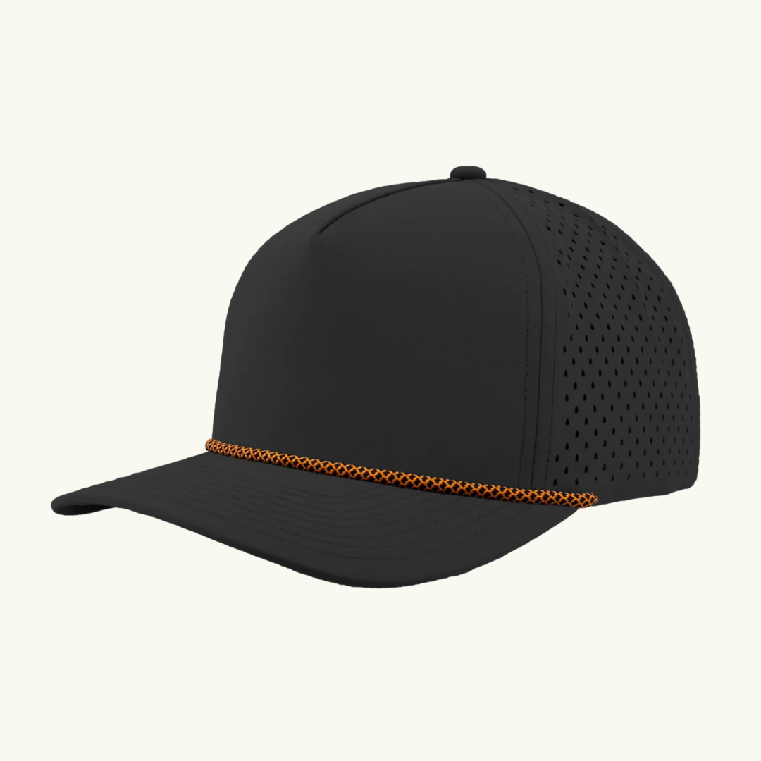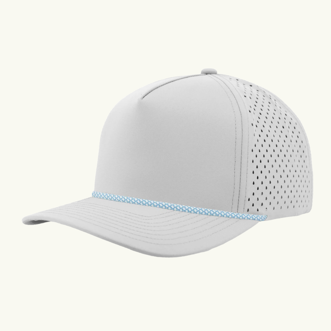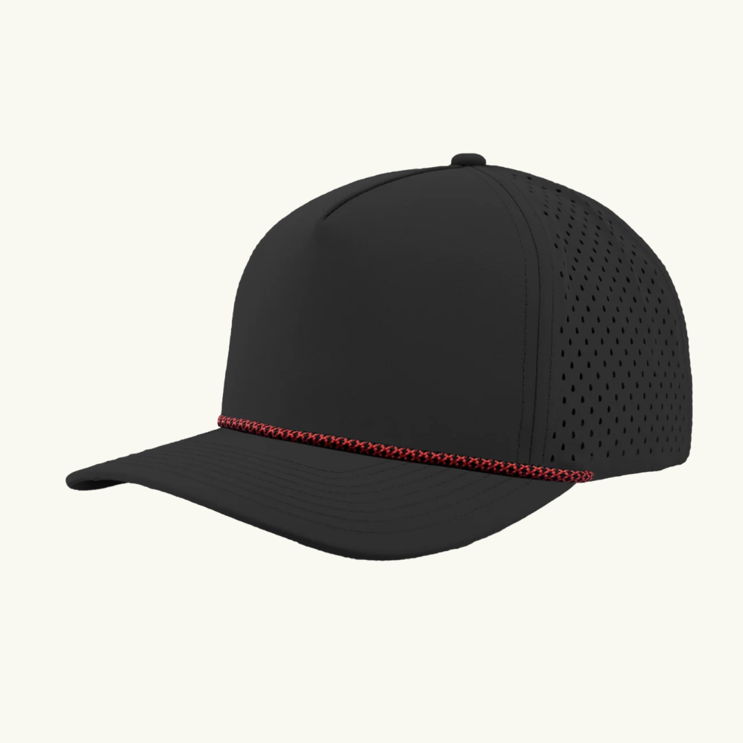 Modern 5 panel rope made of performance fabric with laser perforations.