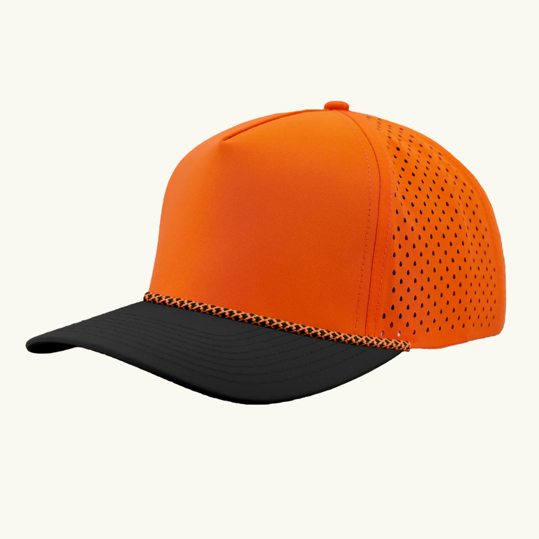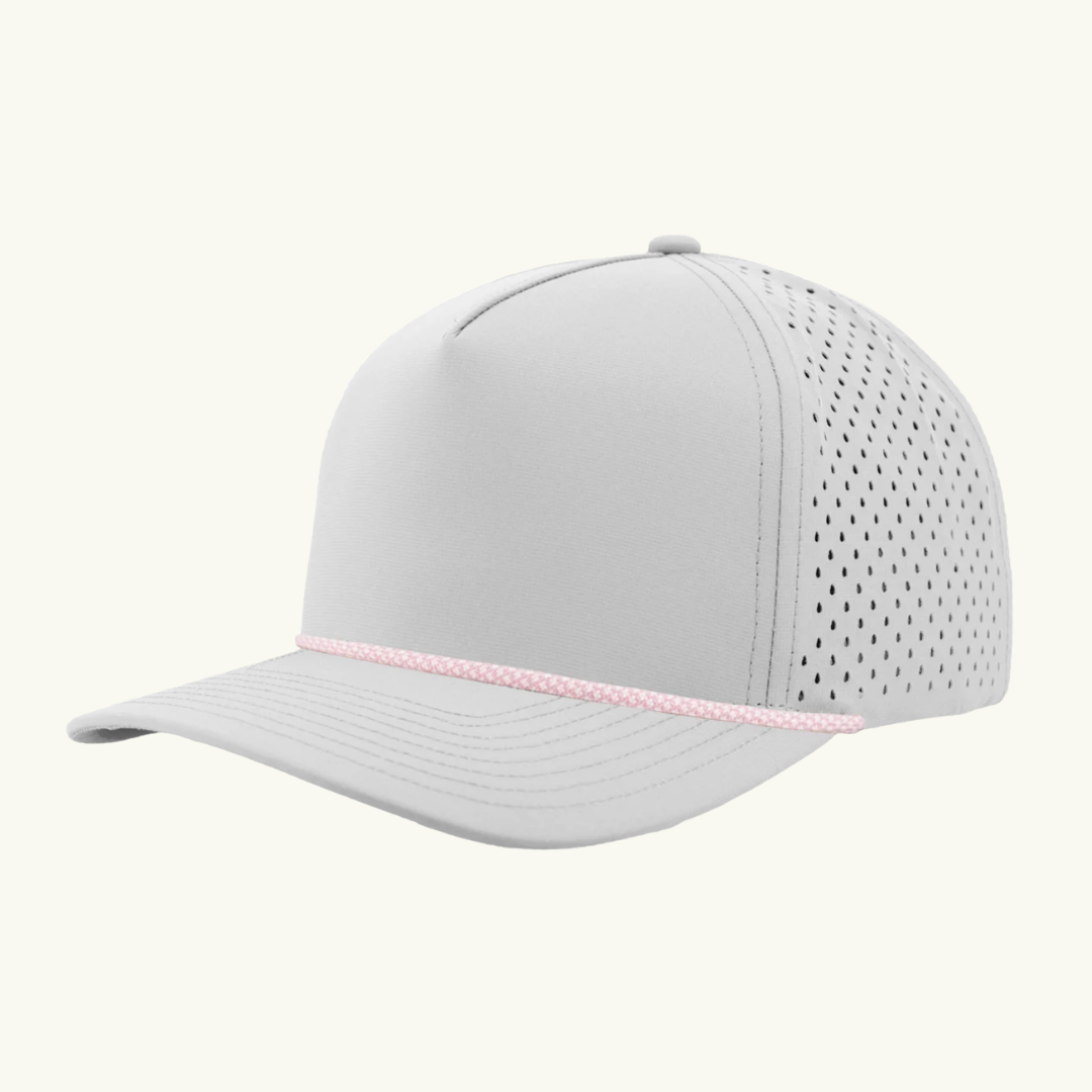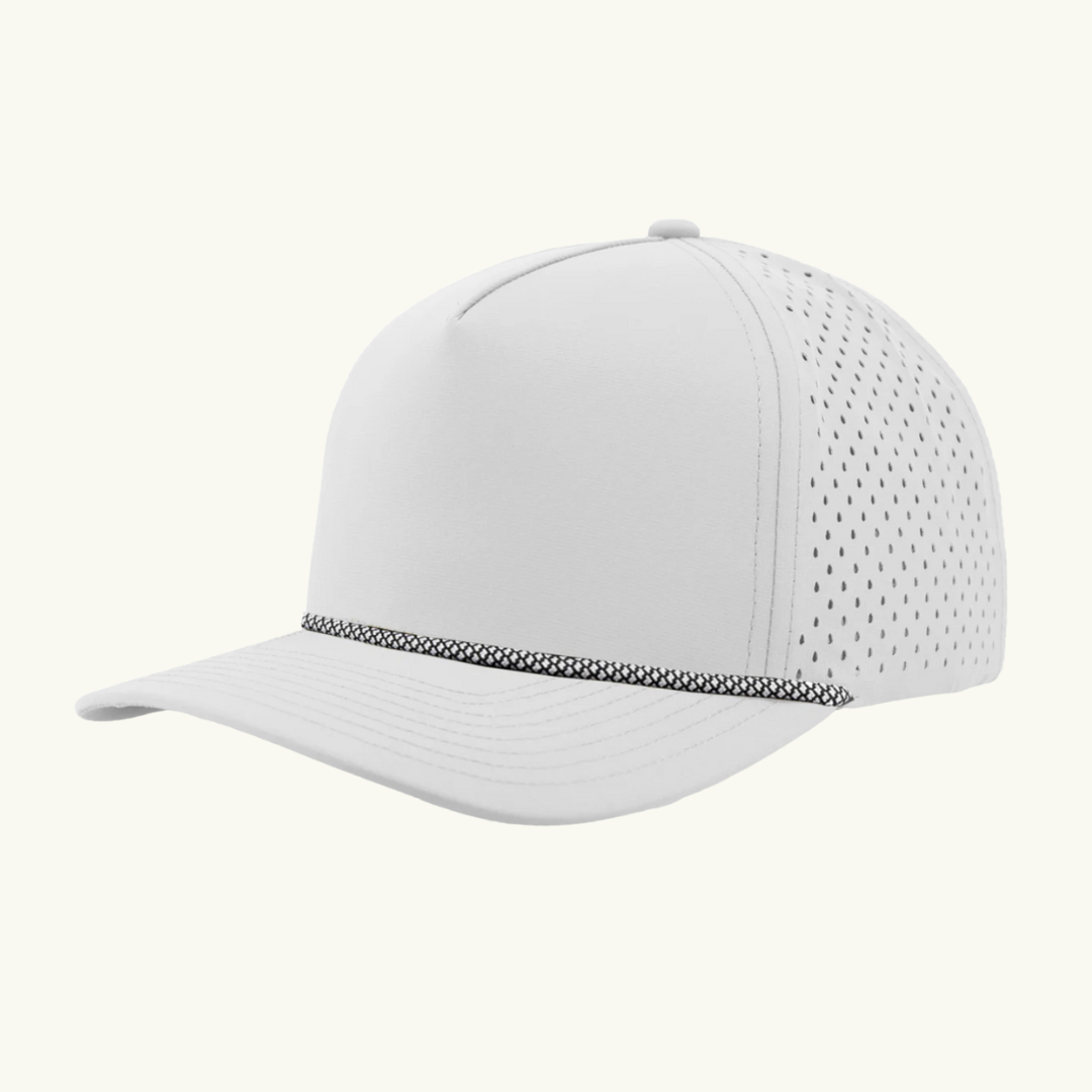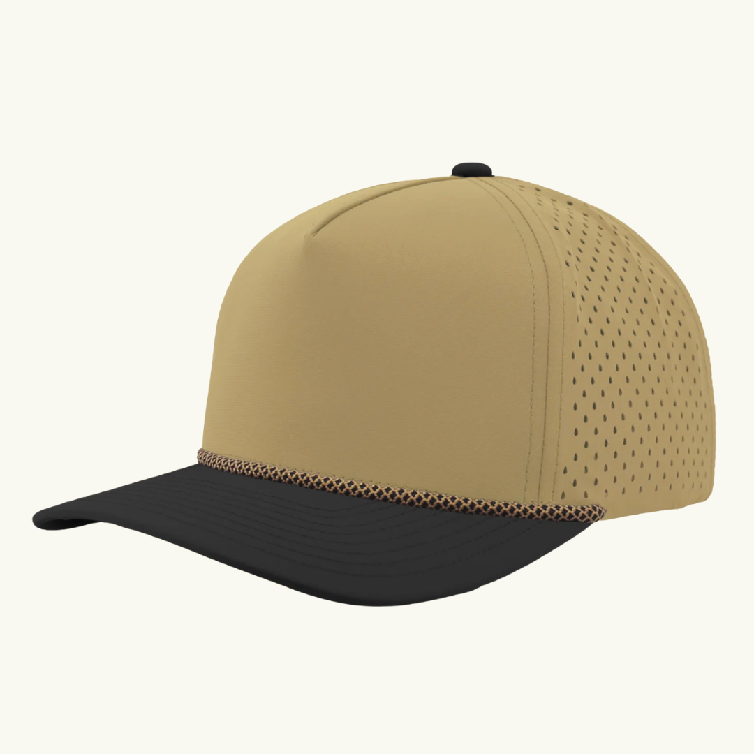Modern 5 panel rope made of performance fabric with laser perforations.
