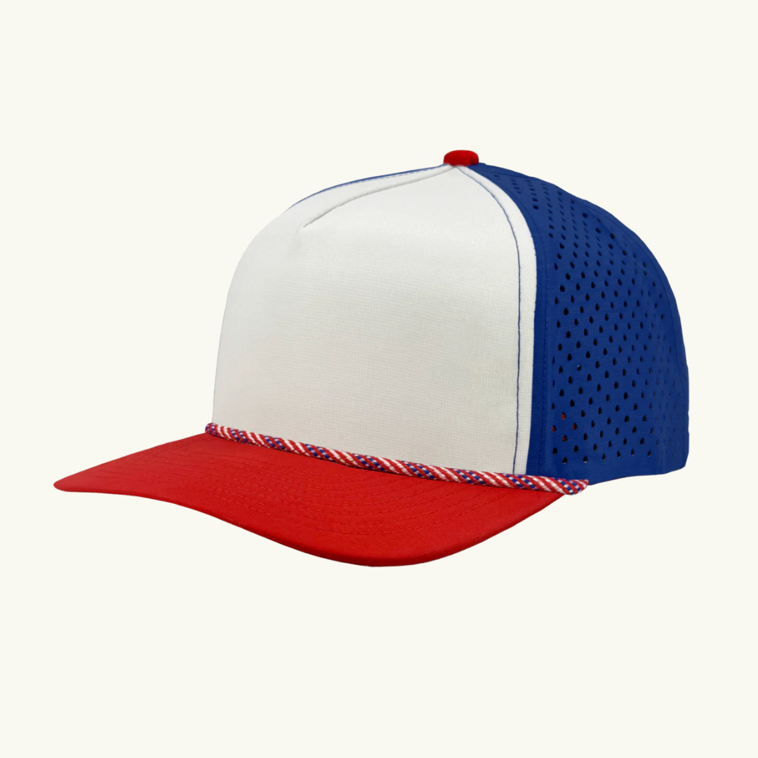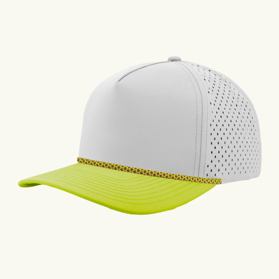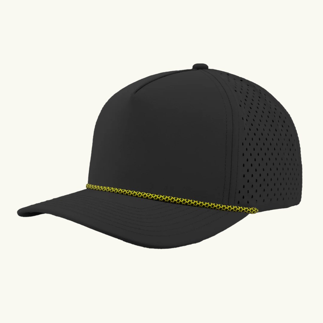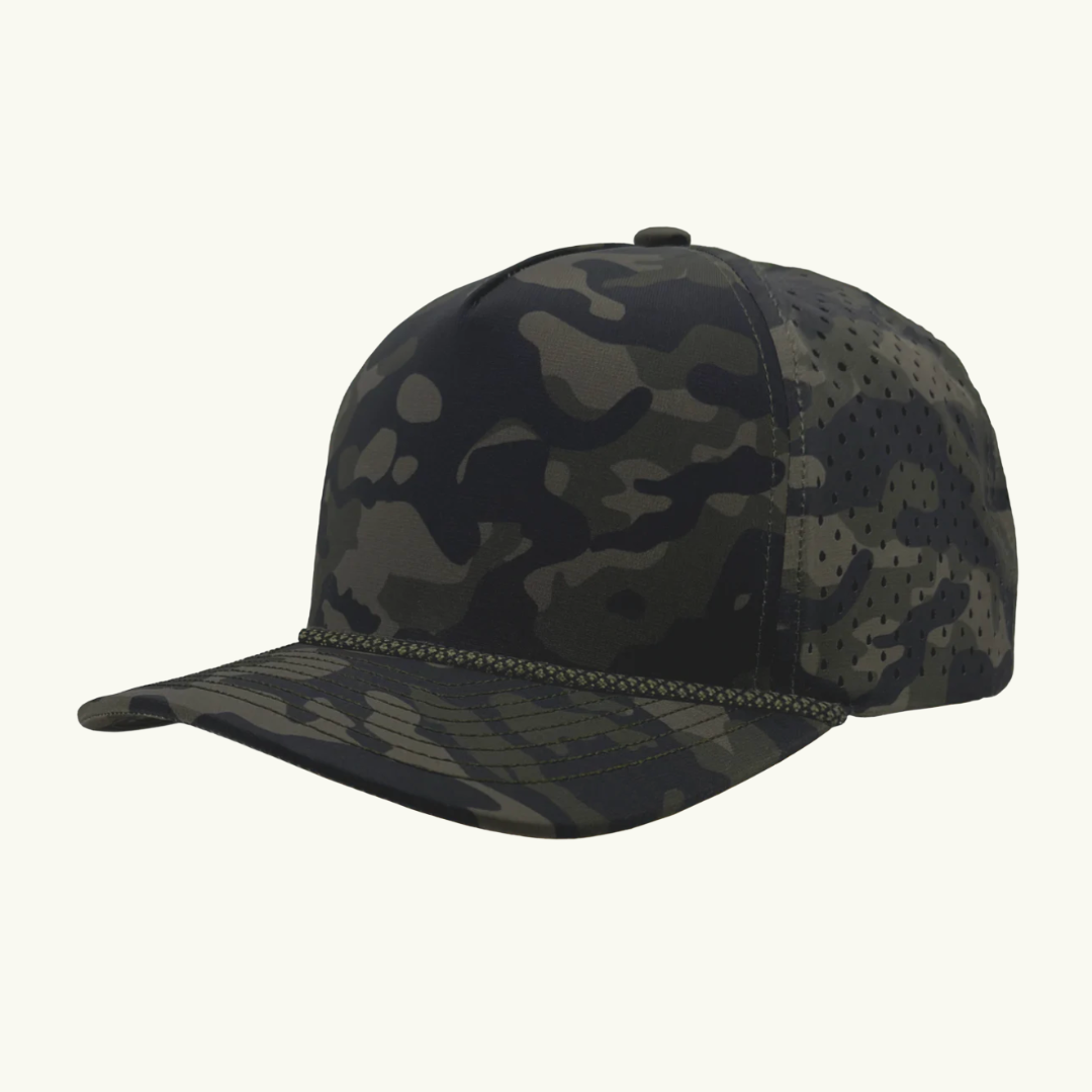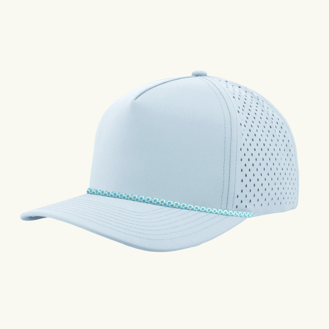 Modern 5 panel rope made of performance fabric with laser perforations.